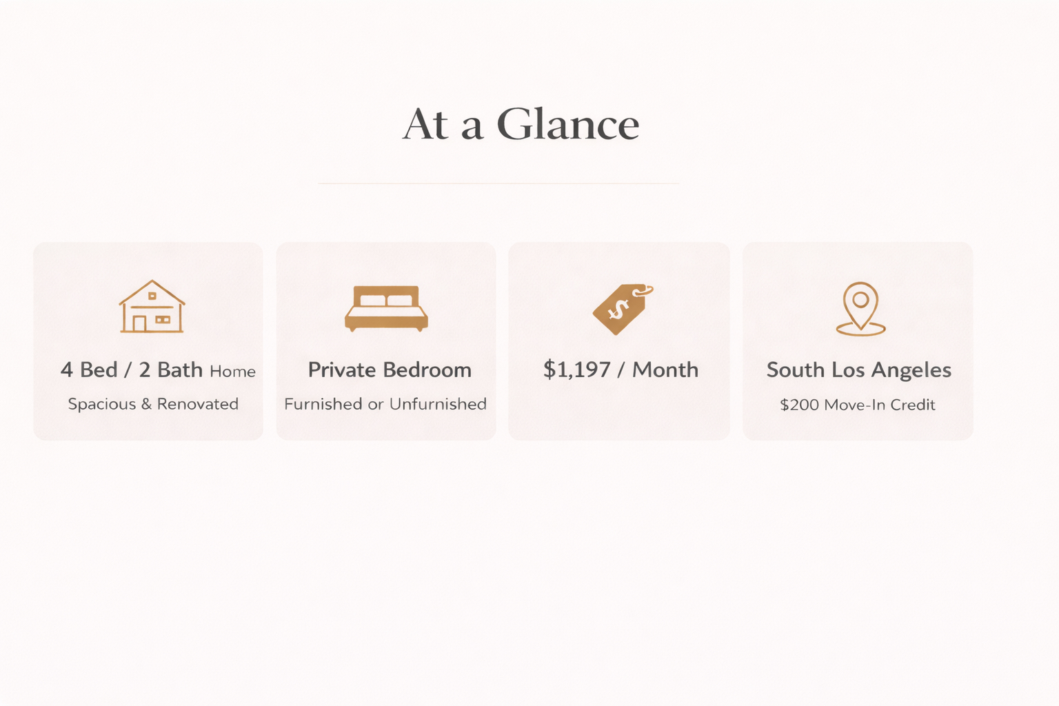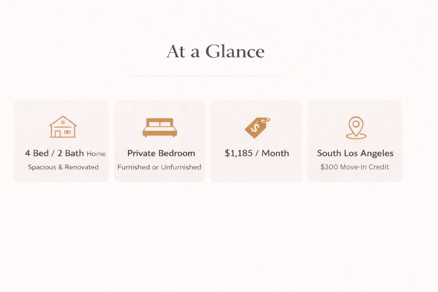 Experience comfortable living in a beautifully renovated 4-bedroom, 2-bathroom home nestled in a quiet Los Angeles neighborhood. This spacious 1,576 sq. ft. residence blends modern upgrades with everyday functionality — perfect for working professionals or students seeking a clean, peaceful environment. The home features brand-new hardwood floors, a recently remodeled kitchen with stainless steel appliances, and updated bathrooms designed with a modern touch. Shared spaces are thoughtfully maintained to create a welcoming, elevated living experience.